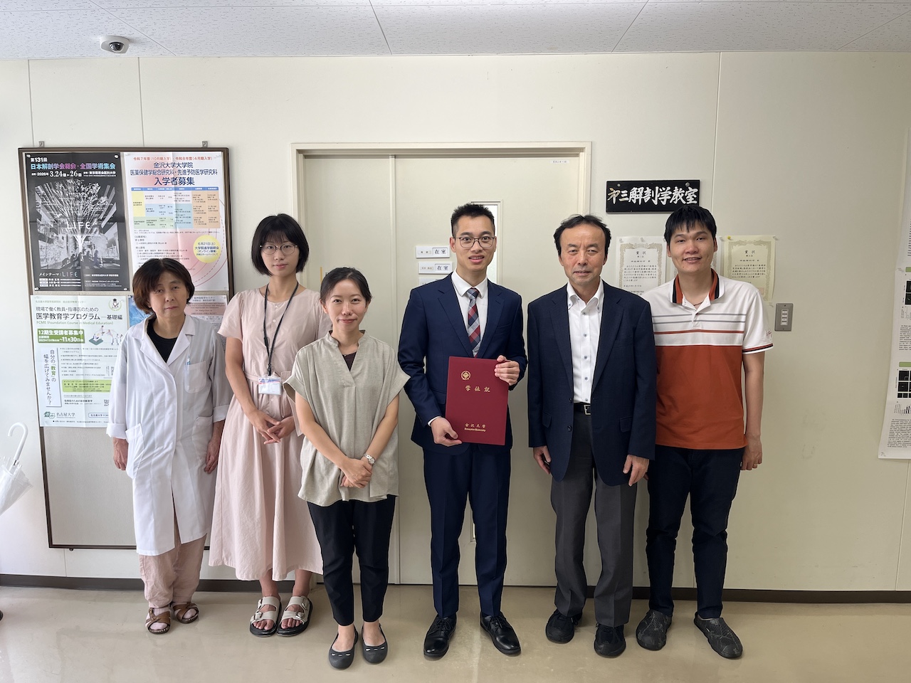 留学生のDinhさんに博士(医学)の学位が授与されました。おめでとうございます!さらなるご活躍をお祈りいたします。