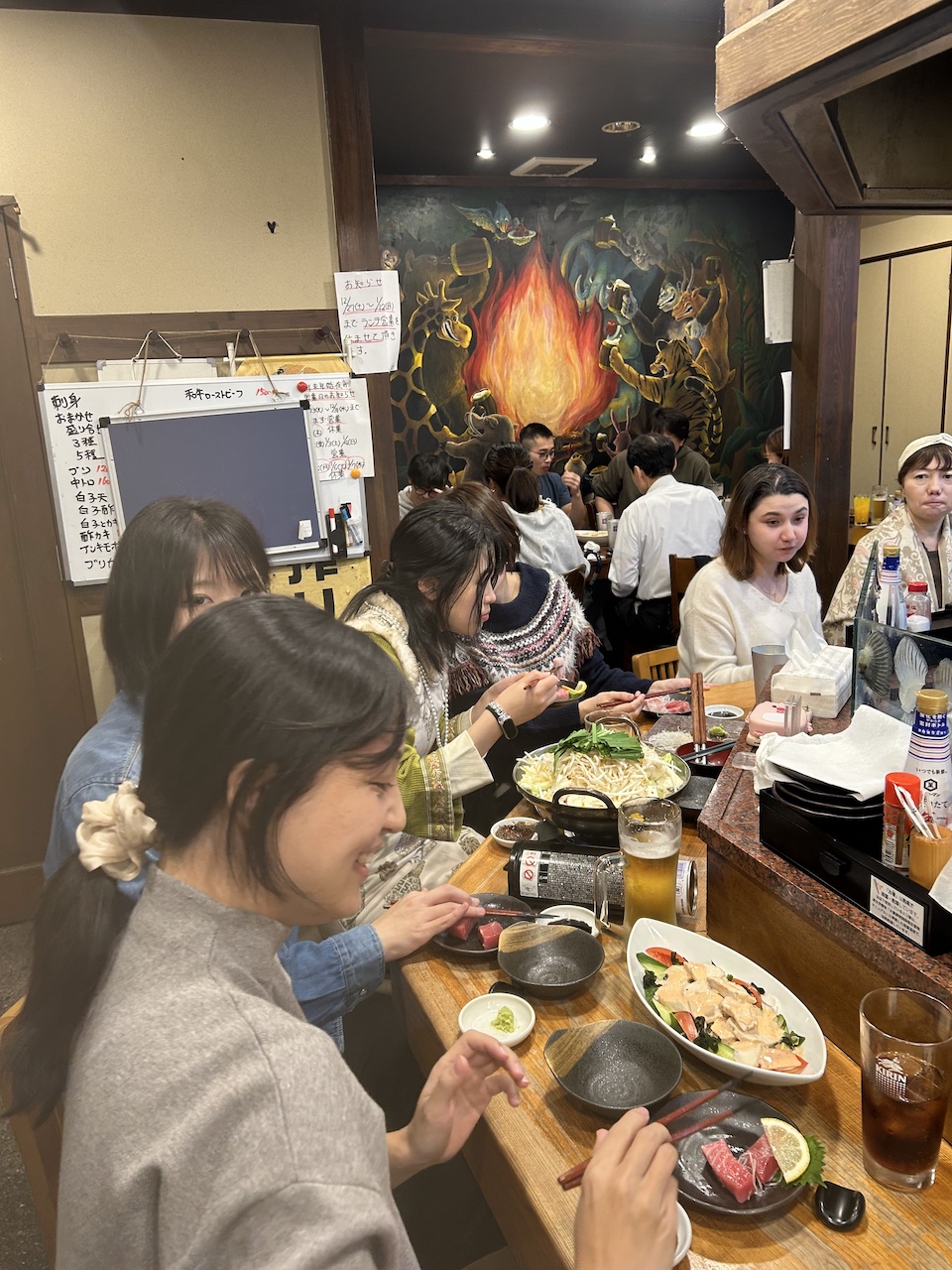 12月12日、基礎配属の打ち上げ&Hieuさんの送別会&忘年会を片町で行いました。基礎配の学生さん、実際に実験をしてみてどうでしたか?発表会、頑張ってください。Hieuさん、あっという間の4年でしたね。体に気を付けて、頑張ってください。教室の皆さん、今年も1年お疲れ様でした。来年も、みんなで頑張っていきましょう。