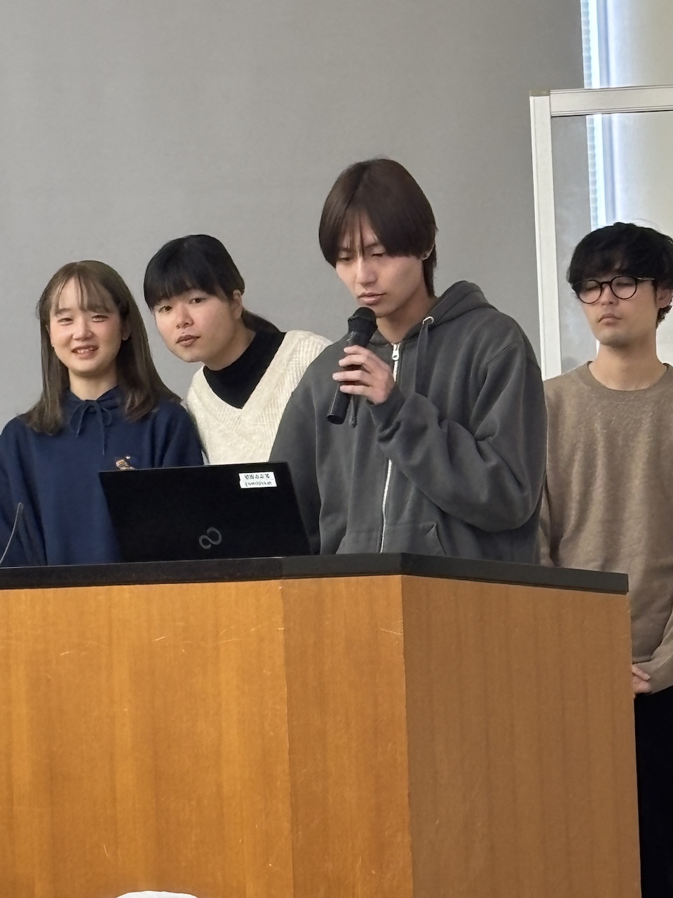 12月22日、基礎配属の発表会が行われました。5分間という短い時間ですが、大変良いプレゼンでした。きちんと質問にも答えられていました。これからもがんばってください。